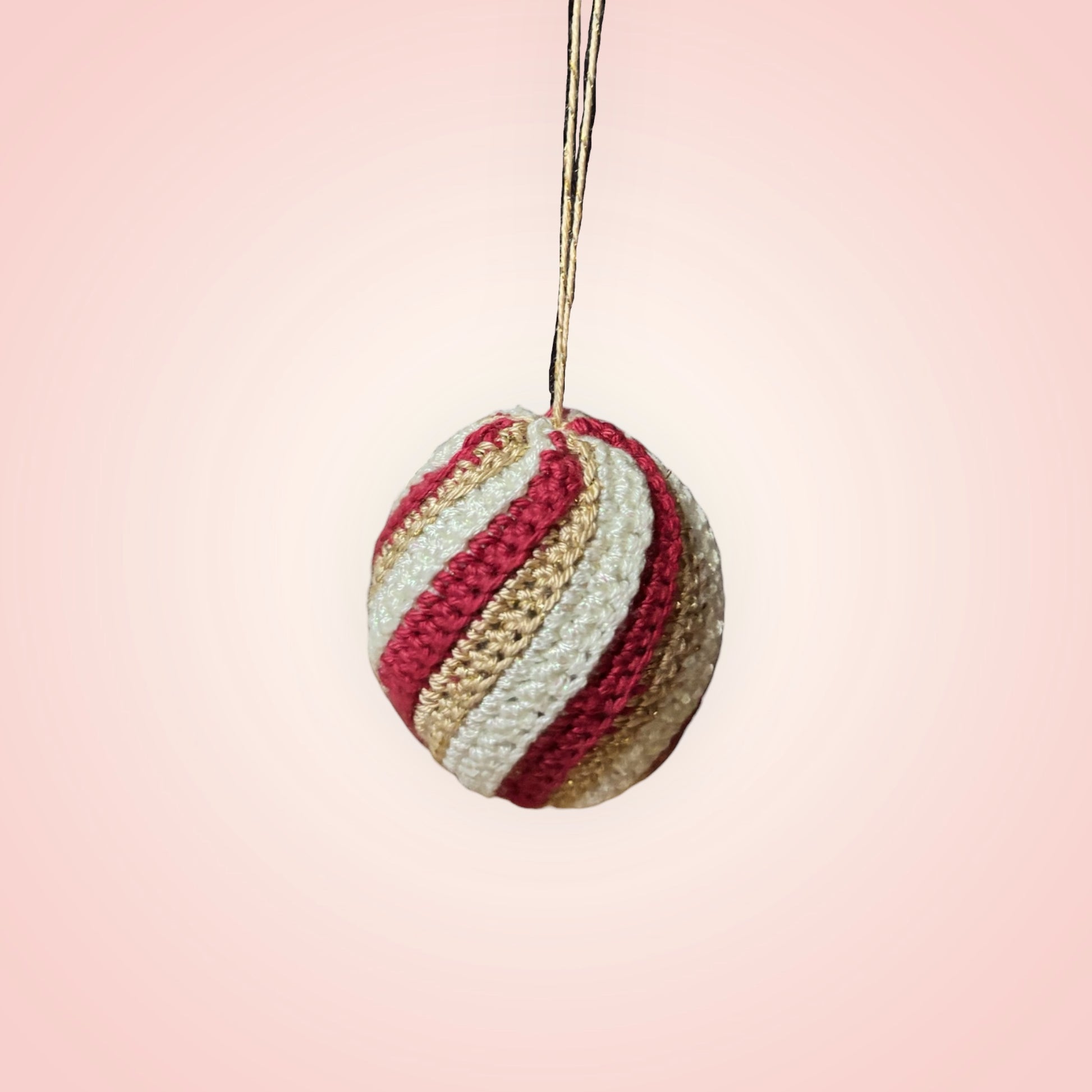 🎄✨ Boule Crochetée Torsadée – Rouge, Blanc & Doré