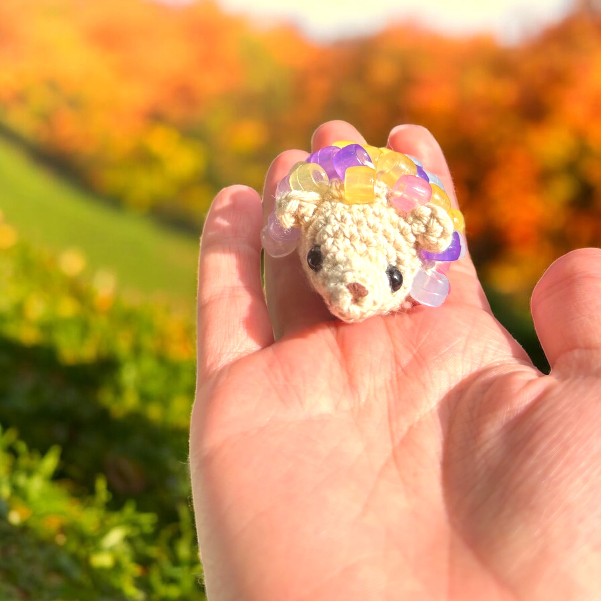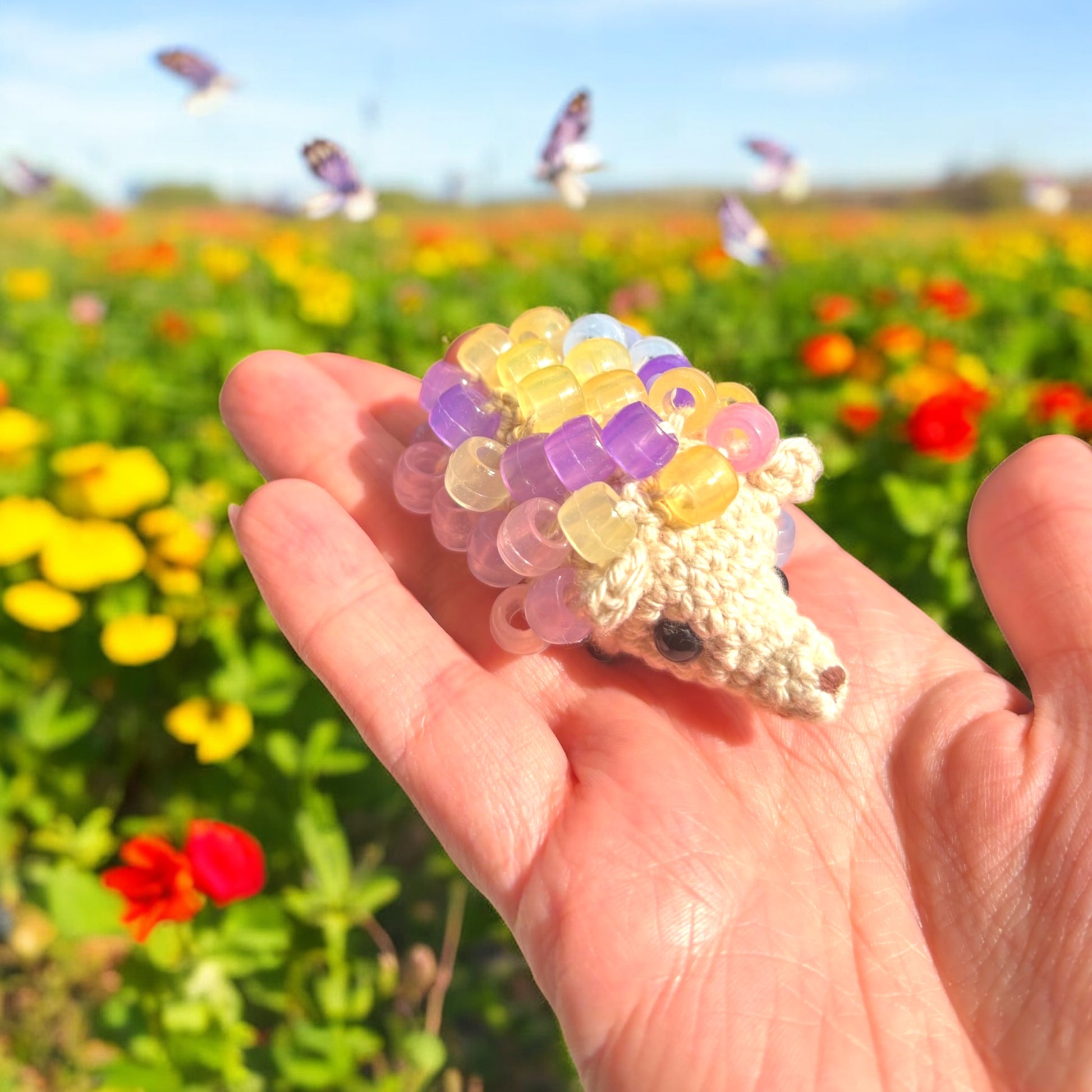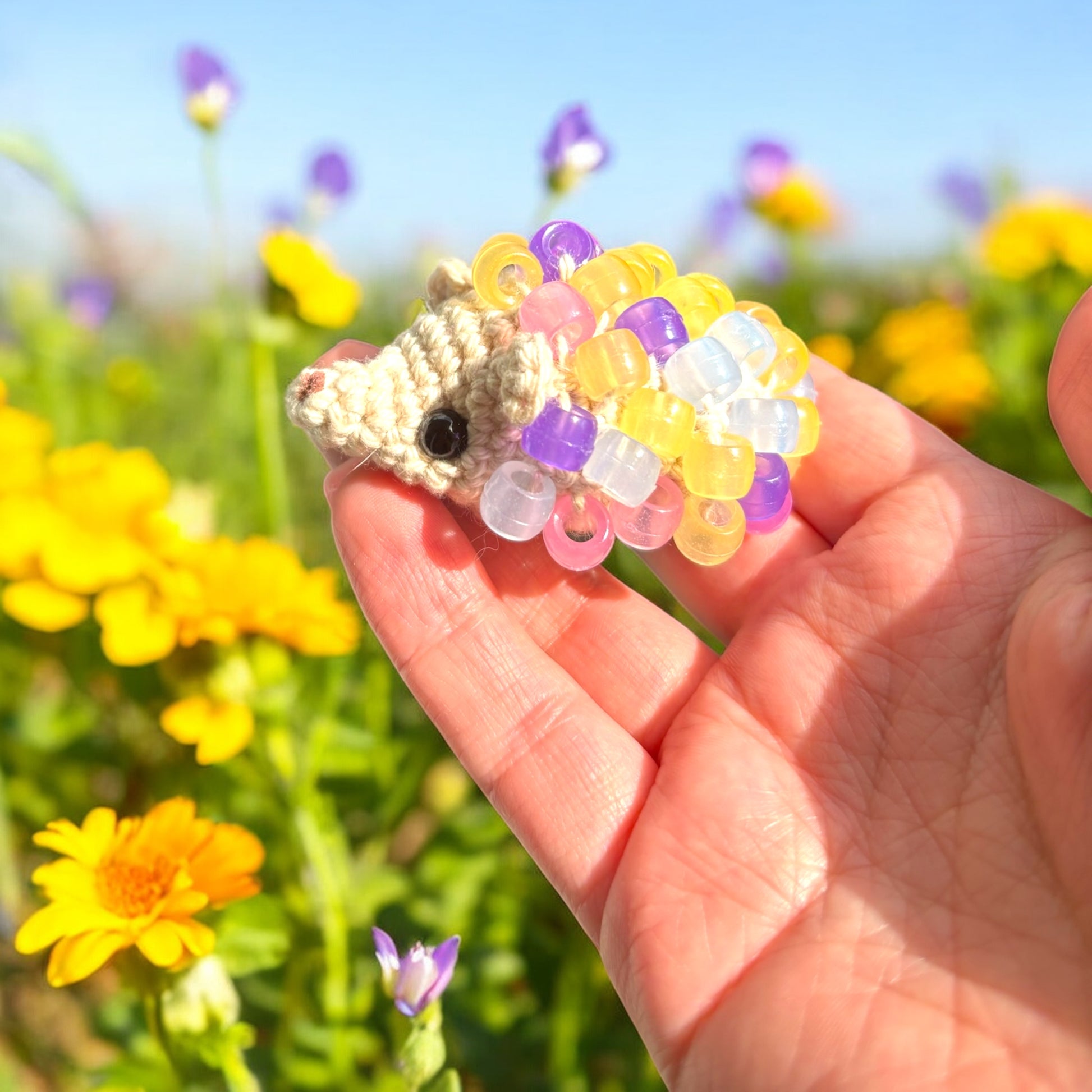 Ce porte-clé hérisson au crochet est orné de petites perles qui changent de couleur à la lumière UV et brillent dans le noir. De jour comme de nuit, il attire tous les regards ! Avec ses perles magiques et son air tout mignon, il est parfait pour les amateurs d’originalité, de kawaii et de magie lumineuse.