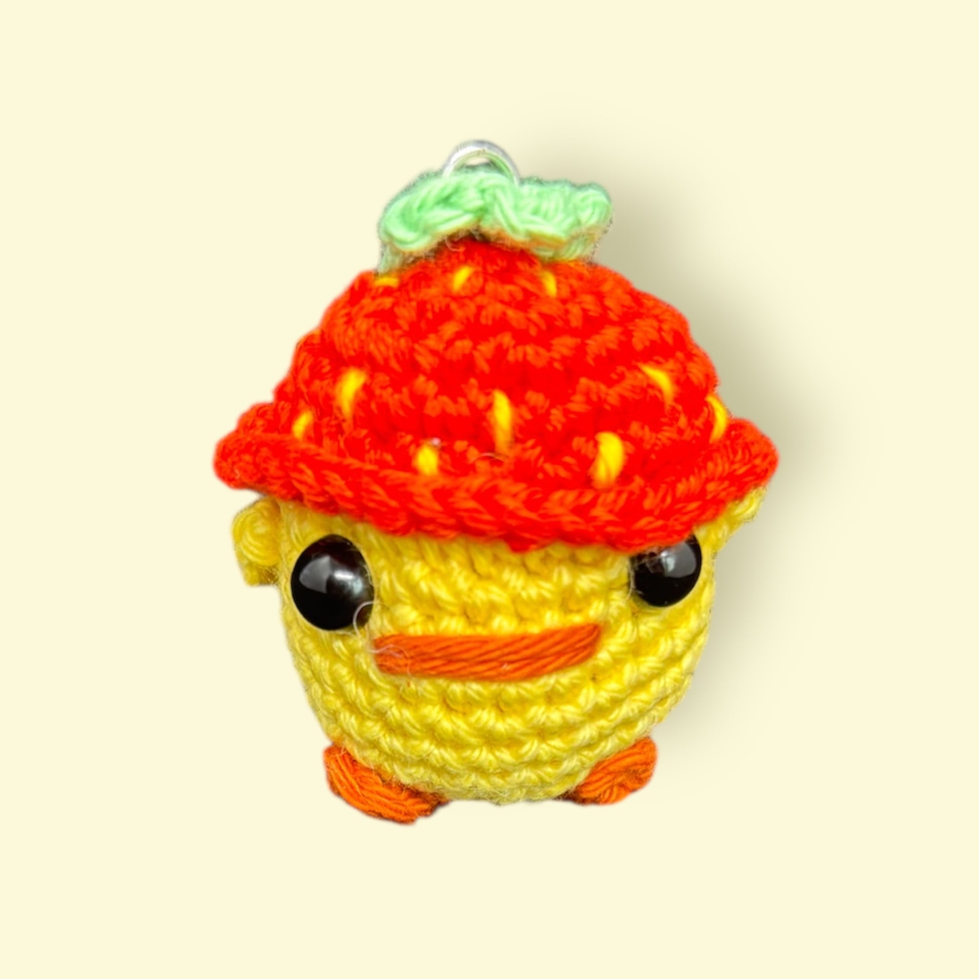 Porte-clé Poussin à chapeau – Une touche de folie fruitée et adorable ! 🐥🍓🐸🍉🧸