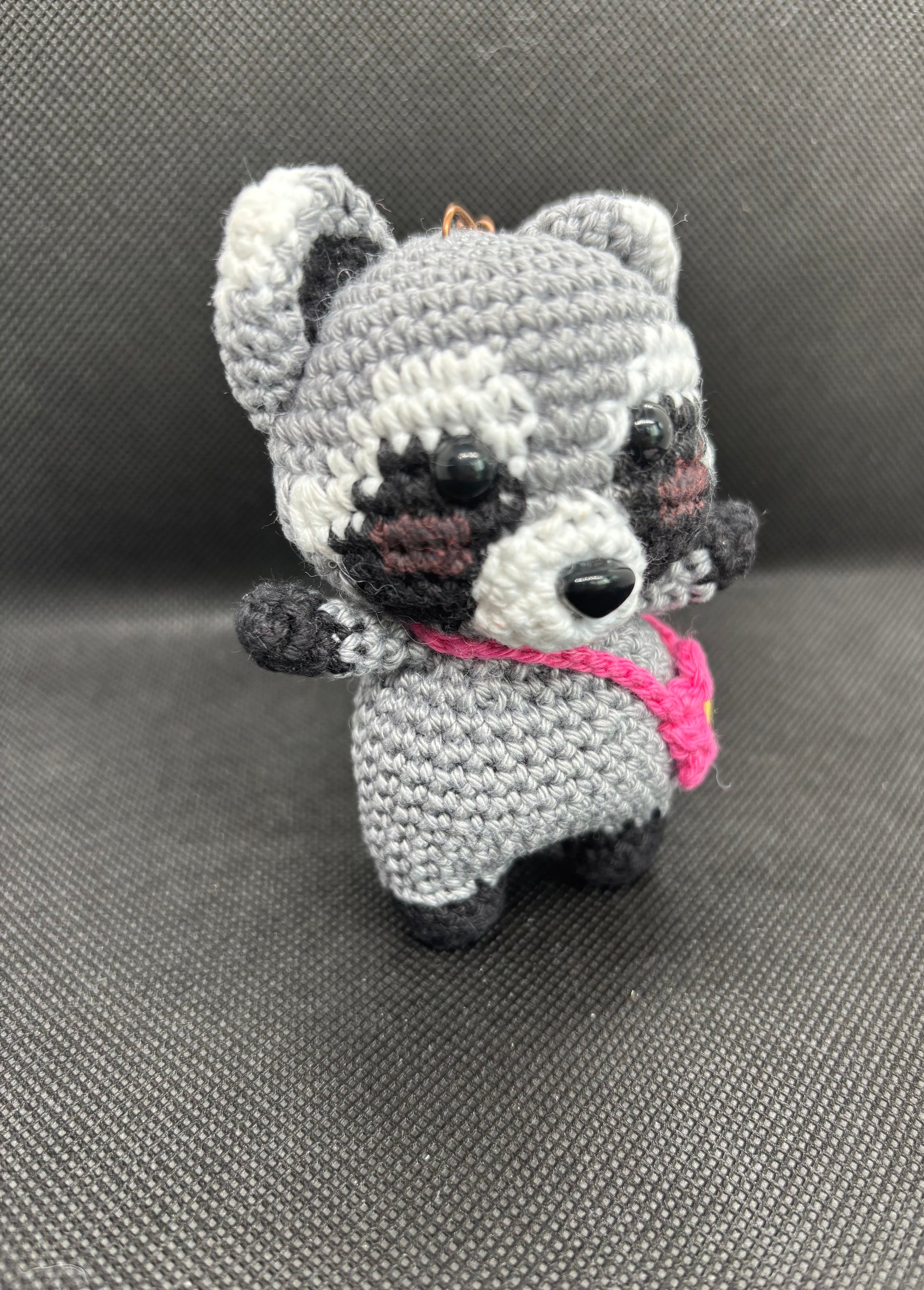 Ce raton laveur au crochet, avec son regard curieux et son adorable sac en bandoulière, semble tout droit sorti d’une histoire pleine de tendresse. Parfait compagnon de clés ou de sac à dos, il ravira les amoureux de la nature, des animaux malicieux et du fait main.